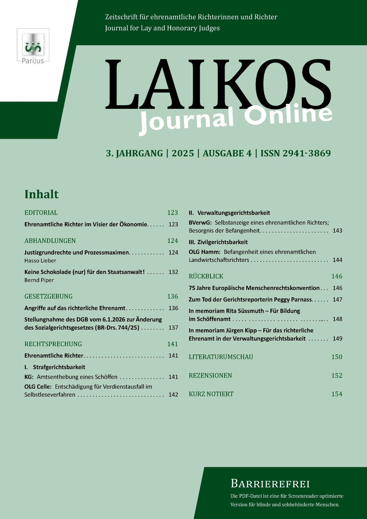 Liebe Leserinnen und Leser, das Jahr ist fast um und die Gegner des richterlichen Ehrenamtes im Allgemeinen und des Schöffenamtes im Besonderen haben sich 2025 mal wieder zu Wort gemeldet. Nach Harry Oliver Gerson, der die Schöffen als „überholte Ornamente[…]