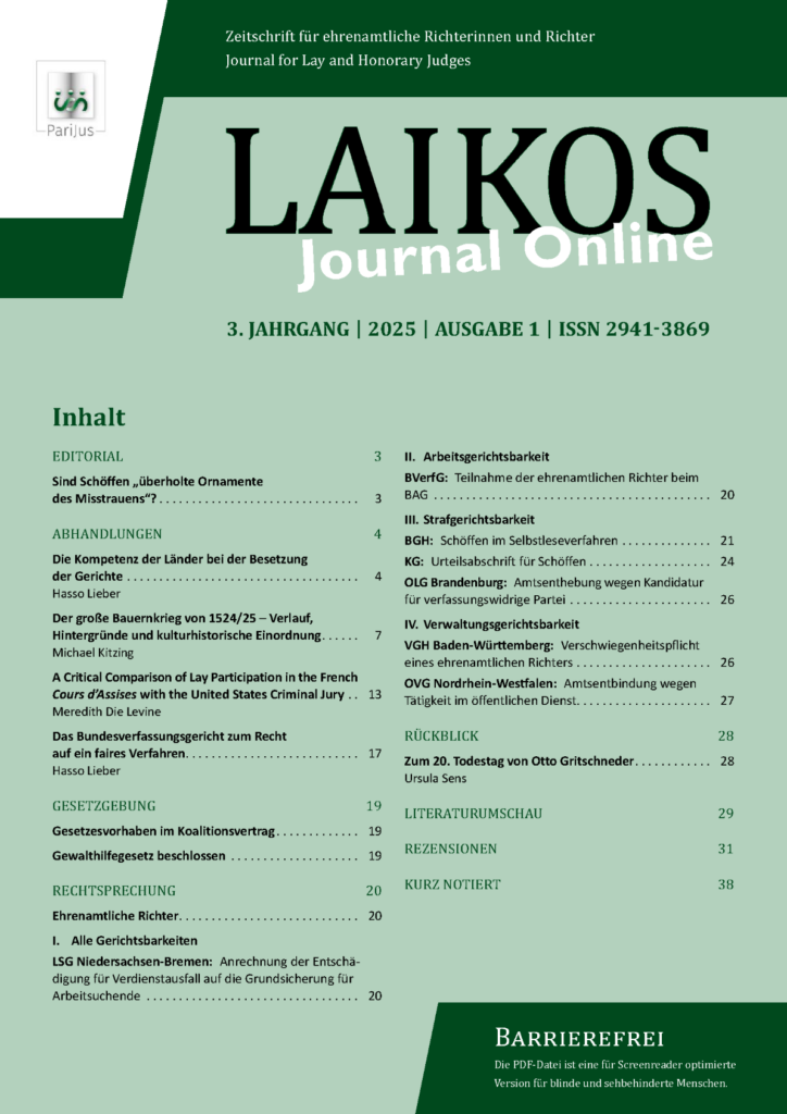 Hasso Lieber: Die Schöffenwahl 2023 im Lichte der Rechtsprechung